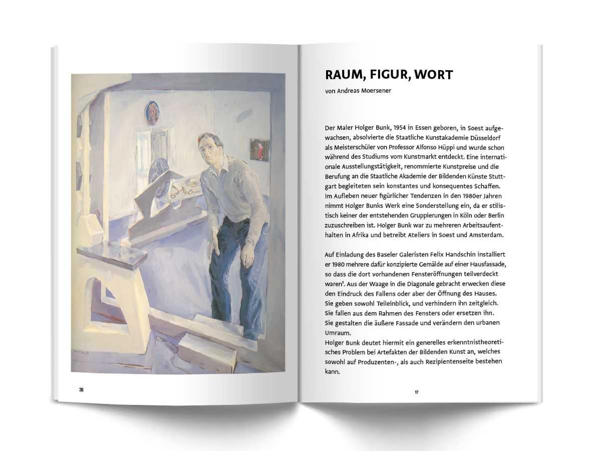 “Actually, I always paint in the subjunctive mode”, says Holger Bunk. His paintings often show himself, self-portraits in an environment determined by architecture. They are rarely pure landscapes, but contain traces of human activity. He looks out of the picture like an introverted and thoughtful being. He meets and seizes the viewers’ gaze and imperceptibly draws them into the image. The activities, events, actions and circumstances of the depicted characters in his works cannot be clearly determined, but instead remain ambiguous.